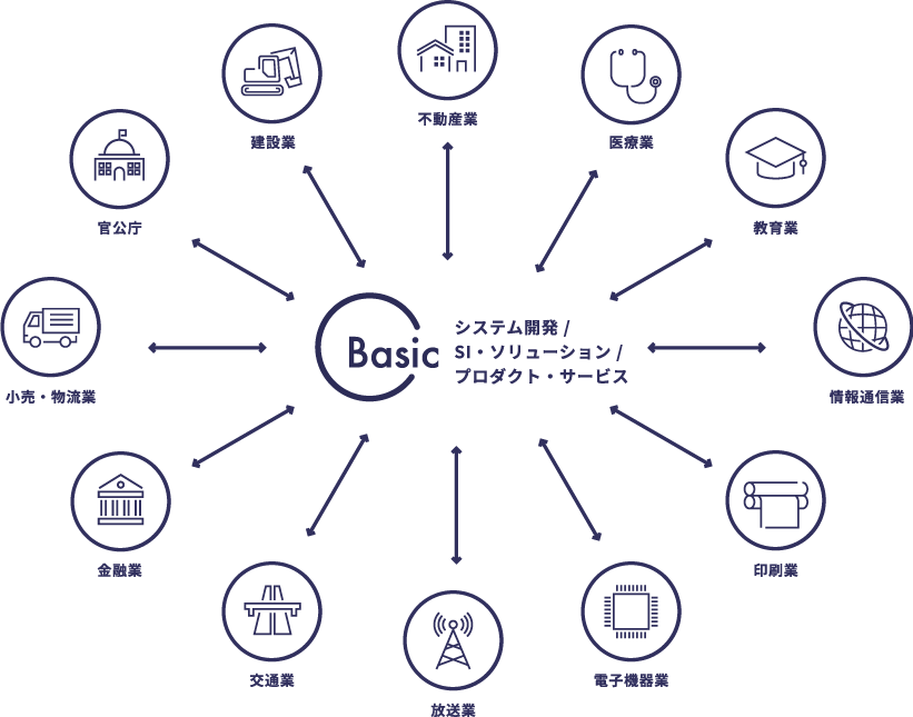 お客様に寄り添った業務システムから、Webに公開され多くの人が触れるシステムまでお客様の状況、要望に沿ったシステムを構築します。