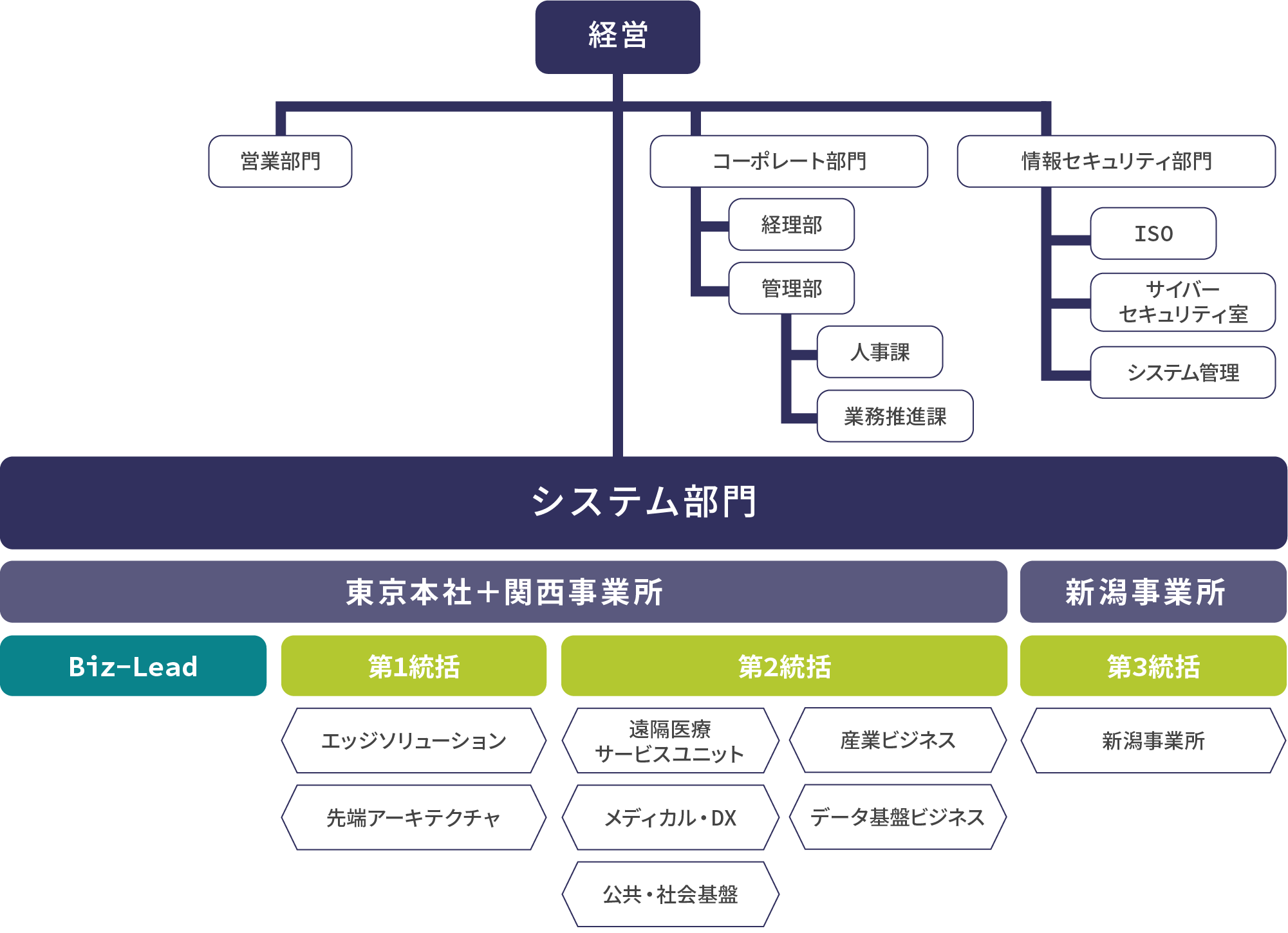 遠隔医療指導サービス(DxDoor)の取り組みによる医療業界へのサービス提供しています。また、様々な業界/分野に対して、お客様の課題を解決に導くため、上流工程(要件定義)~下流工程(運用保守)まで一貫した「SI」を追求し、ビジネスを発展させる組織として活動しています。